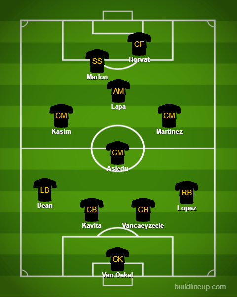 Why this formation? It allows Marlon and Edi to form a striking partnership, much like last week with Marlon and Prosper. Horvat was most dangerous when working with another attacking player, not as a solo target man. We would also allow Enzo to get back into the attack rather than leaving him in the back. We were a train that lost its engine and we were absolutely stuck without him.
