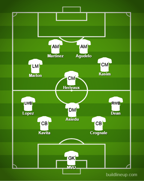 This feels like the easiest change. Simply switch out Herivaux for Lapa and condense the attacking midfield again. Let Lopez and Dean create the width and allow Asiedu and Lapa to dictate the midfield pace and direction. This is what we saw when we were at our best.
