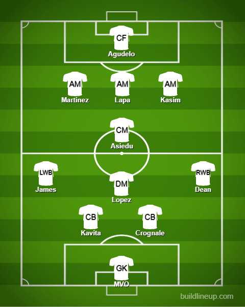 The 4-1-1-3-1, or can be a 3-2-1-3-1. Does that sound familiar? It’s how we played against the Battery. You know, our best match of the season? This time we dropped Marlon for Martinez, but that’s to keep Agudelo in the line up. If you wanted to, you could just put Enzo Martinez up top and have Marlon on the wing.