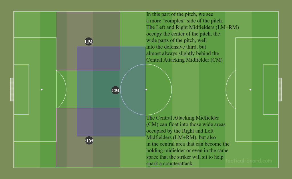 The attacking midfield can exist as deep as our holding midfielders or as high as our strikers. They can go as wide as a full back, or as central as a center back/holding midfield.